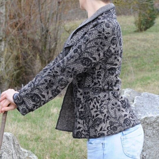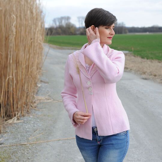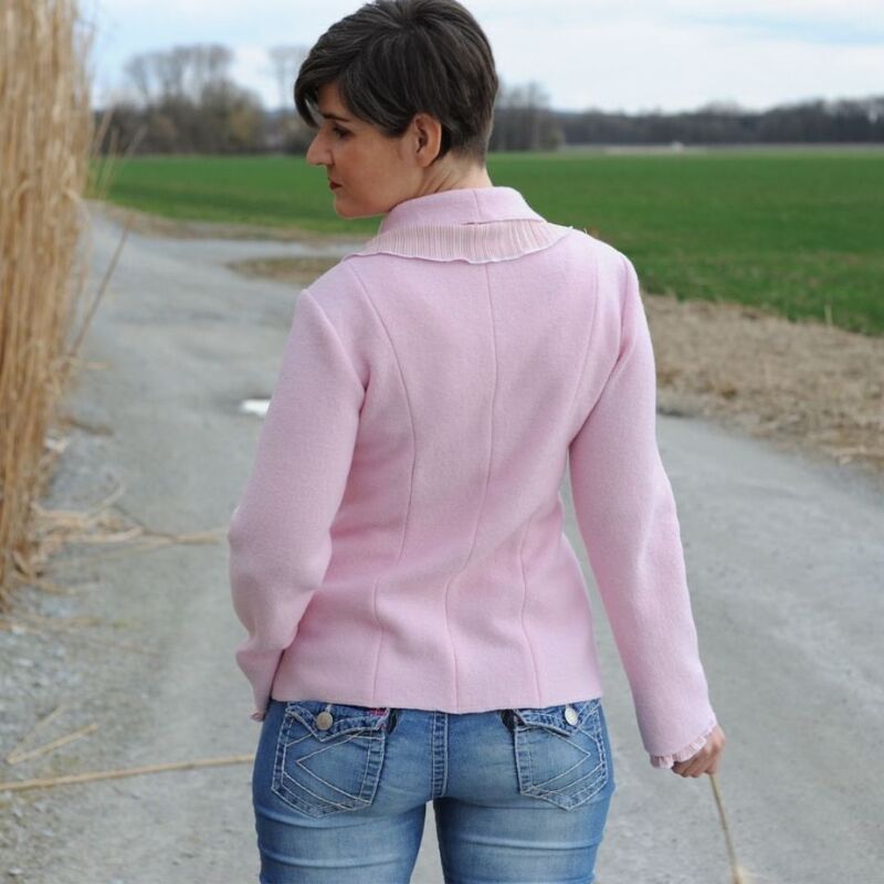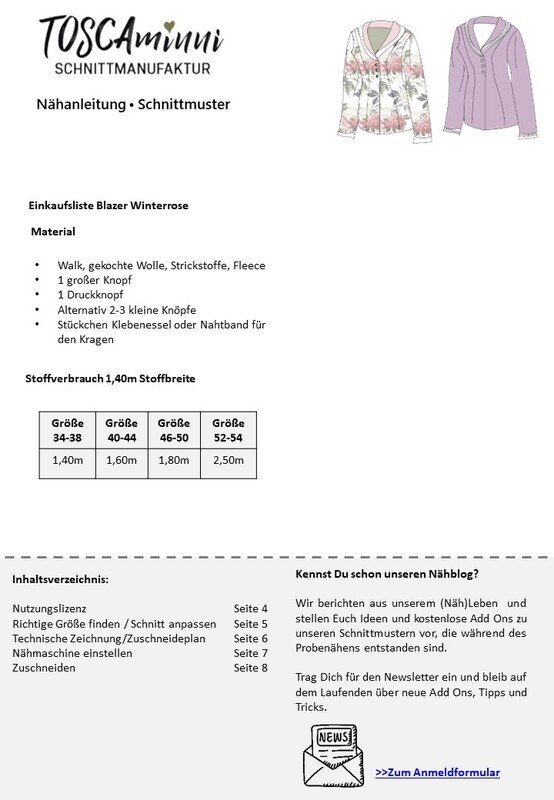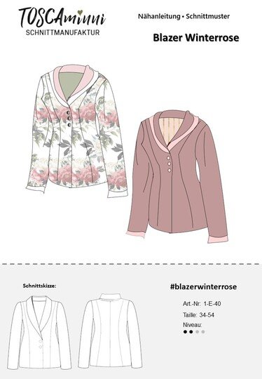 Das Schnittmuster Winterrose ist ein edler Blazer aus Walk, den wir extra für Nähanfänger/innen designed haben. Der Schnitt ist einfach gehalten, der Blazer wirkt trotzdem opulent. Die Ärmelmanschetten und der Schalkragen sind doppelt genäht und dienen als Blickfang. Der Blazer muss – aus Walk genäht – nicht abgefüttert werden.