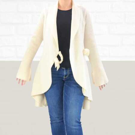 vielen Dank für den Hinweis, wir werden gerne Fotos ergänzen. Die Jacke kann mit Bindebändern oder einer Schlaufe + Knopf oder was einem so einfällt, geschlossen werden.