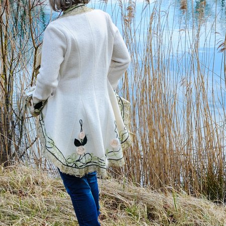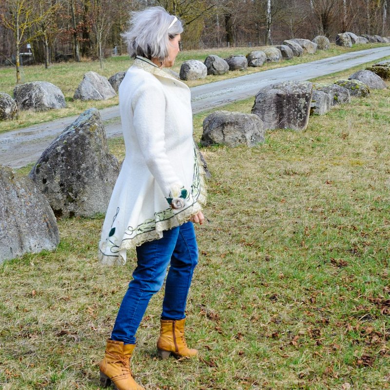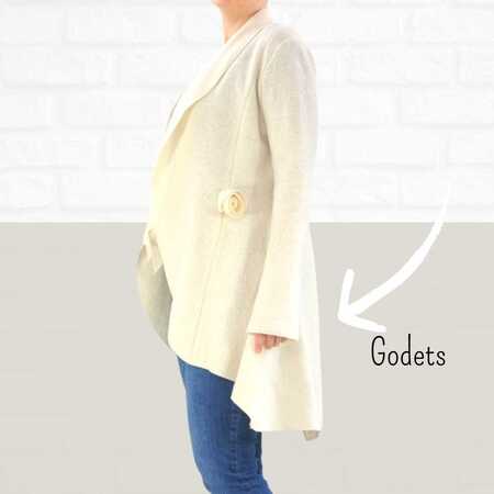 Ich bin ein großer Fan von Godets. Sie machen immer eine gute Figur. Die Jacke gefällt mir sehr gut. Und mit der abgebildeten Bordüre ist sie ein Traum.