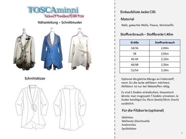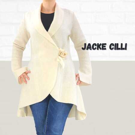 Das Schnittmuster Cilli ist eine elegante Damenjacke. Die Godets sind ein besonderes Highlight, sie verleiht der Jacke einen gewissen Vintage-Look. Gleichzeitig ist die Jacke tailliert geschnitten und wirkt daher besonders elegant.