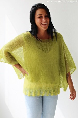 Dieses Set, bestehend aus einem zarten Top in frischem Limettengelb und einem wärmenden Poncho in sanftem Kiwi, ist der perfekte Begleiter für die Übergangszeit: