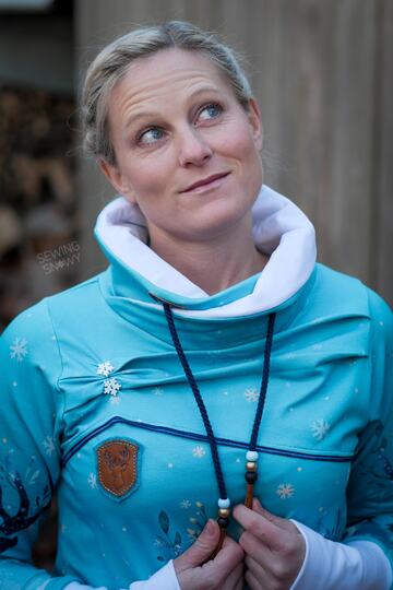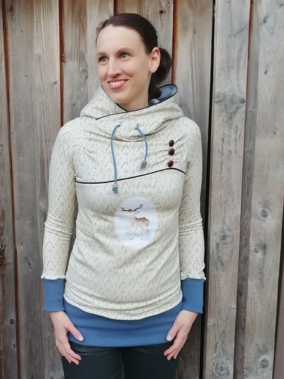 Hoodie Elise könnte variantenreicher kaum sein. Gewohnt verspielt mit dem gewissen Etwas habt ihr die Qual der Wahl. Elise könnt ihr in der Variante als normalen Hoodie oder in der Crop-Version (gerade geschnitten und kurz oder als Vokuhila-Crop) nähen.