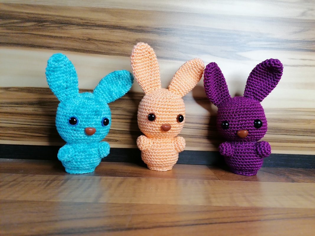 Das kleine Häschen Ela ist eine süßer kleiner Hase, der selbstständig stehen bleibt.