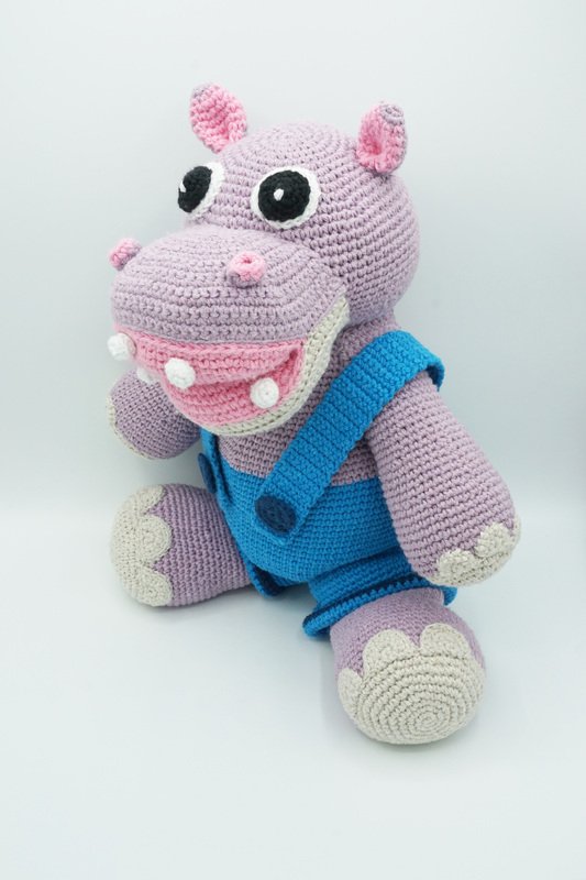 Eine Dabobbi-Hippo ⇝ Häkelanleitung auf 10 bunten Seiten im PDF-Format zum selber Häkeln.