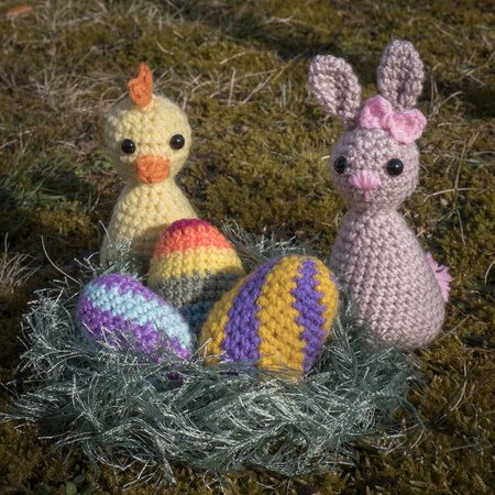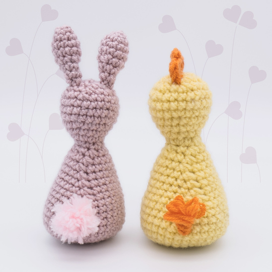 Hier kannst Du eine Häkelanleitung für ein Küken und einen Hasen im PDF-Format kaufen.