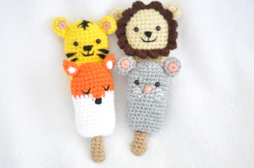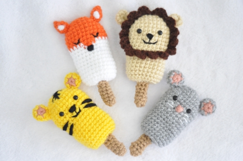 Süße Eis-Tiere schnell und einfach aus Wollresten gehäkelt.