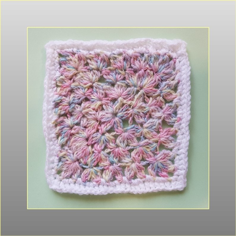 Flower Power mit Babyverlaufswolle bunt und weiß ca. 11x11 cm