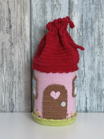 In der Anleitung wird aber auch beschrieben, wie man andere Dosengrößen umhäkeln kann.
