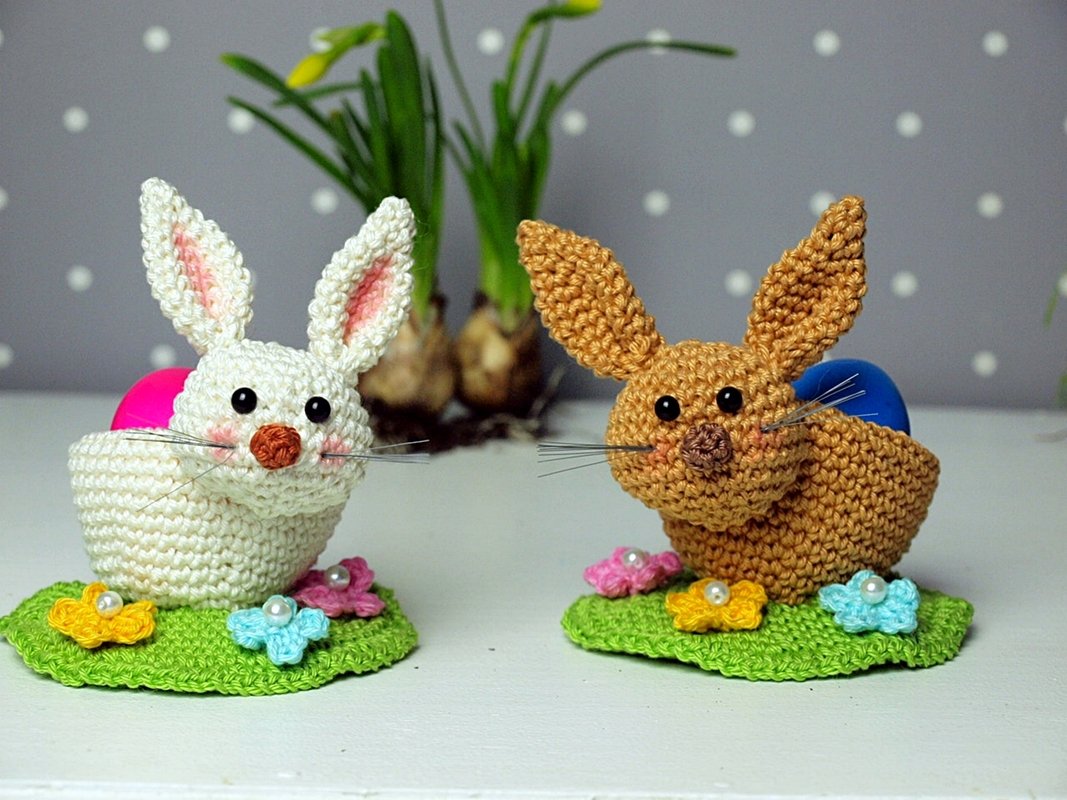 Häkel Dir mit meiner Anleitung die fleißigen Osterhasen und dekoriere Deinen Frühstückstisch damit. Sie sind kleine nützliche Helferlein, aber auch ein tolles Ostergeschenk. Man kann sie nicht nur mit Eiern, sondern auch mit kleinen Süßigkeiten befüllen.