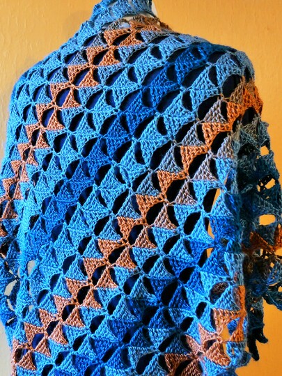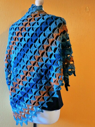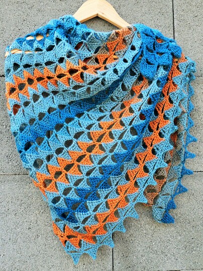 Das Dreieckstuch Clärenore sollte gespannt werden, dann kommt das Muster besonders gut zur Geltung.