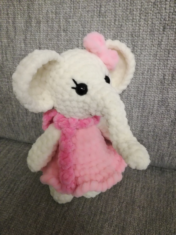 Das fertige Elefantenmädchen ist ca. 22 cm groß