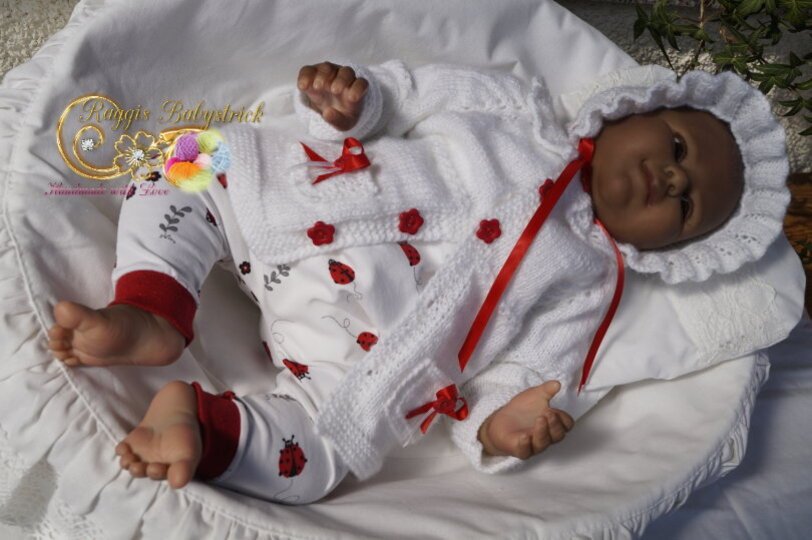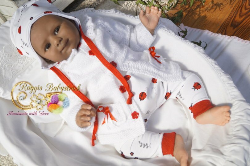 Strickanleitung für ein wunderschönes Set, 3-teilig für Babys & Reborns, Gr. 50 . Das Set ist aus Babysoftwolle Nd. Nr. 2,5 + 2,75 gestrickt. Die Anleitung ist sehr genau beschrieben und mit vielen Fotos. Du kannst mit dieser Schritt – für – Schritt – Anleitung dieses Set gut nacharbeiten.