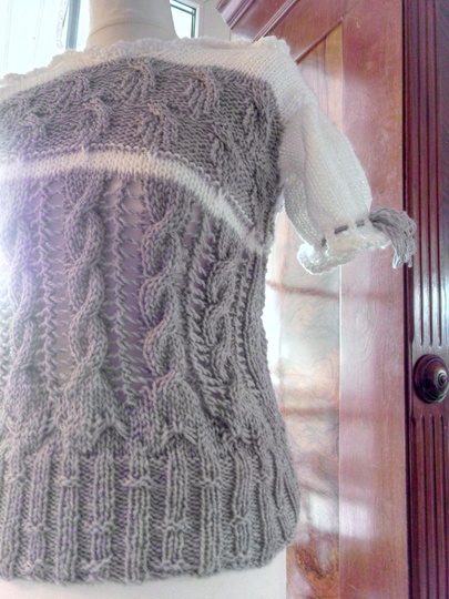 Strickanleitung für einen Pullover mit Mustermix - Zopfmuster und Ajourmuster - mit Puffärmeln im Vintagelook. Dieser Pullover ist trotz der unterschiedlichen Muster auch von Strickanfängern zu bewältigen. Der Pullover passt, Dank der Dehnbarkeit Größe 36 - 40.
