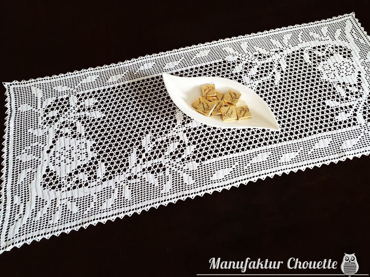 Du kannst gern so viele Tischläufer häkeln, wie Du möchtest. Mit einem Hinweis auf mein Urheberrecht der Anleitung darfst Du Deine selbst hergestellten Tischläufer auch zum lokalen Kauf anbieten. Angebote als Auktion sind NICHT gestattet!"