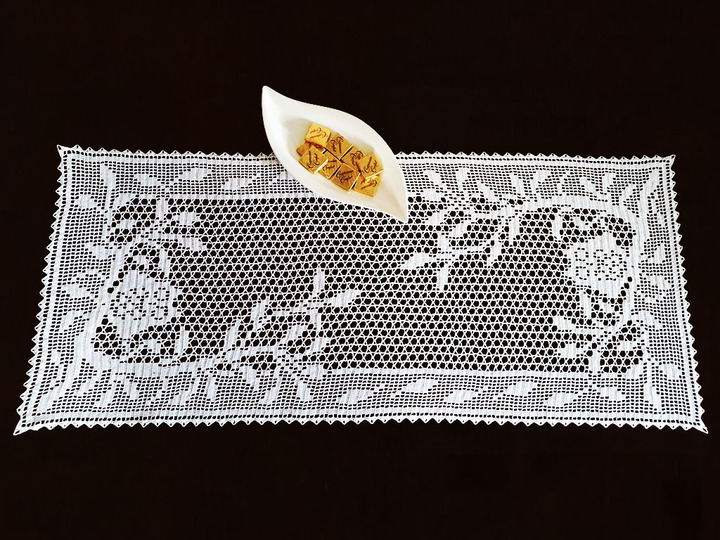 Verwendest Du stärkeres/dickeres Garn, wird der Tischläufer größer.