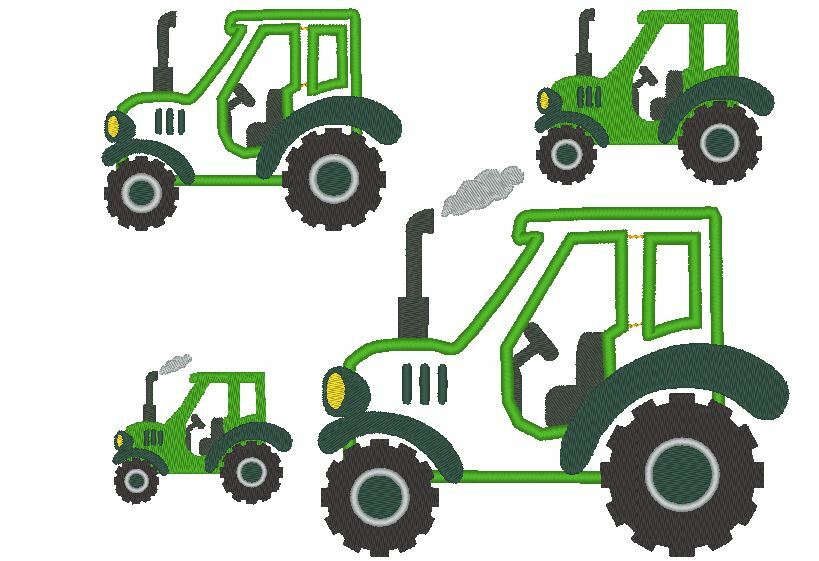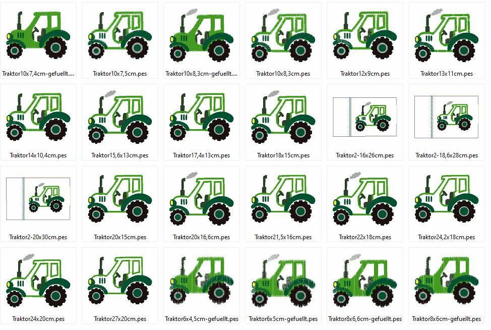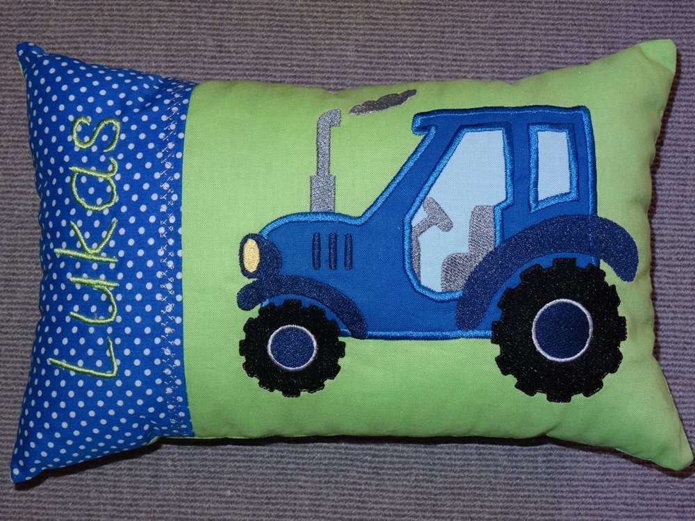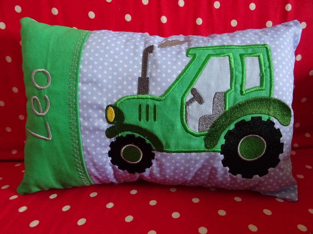 der Traktor von 6cm bis 27cm und das Kissen in 20x30cm 18,5x28cm und 16x26cm
