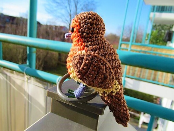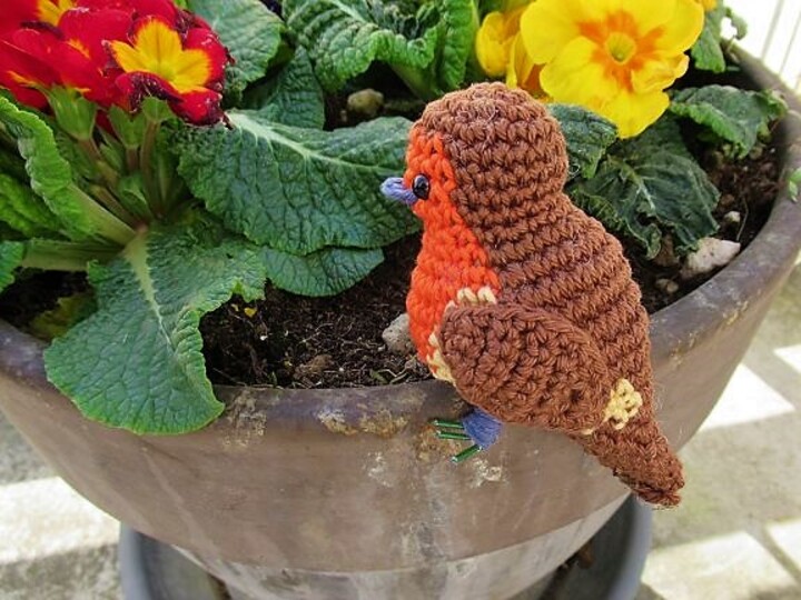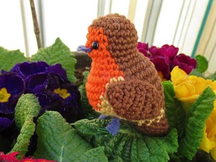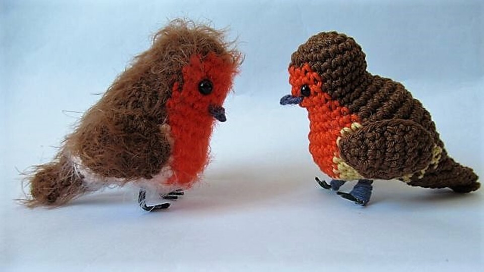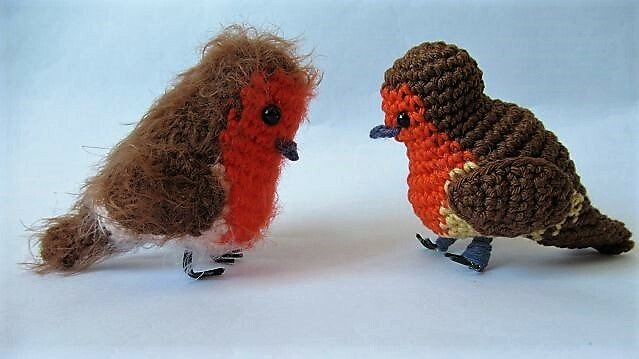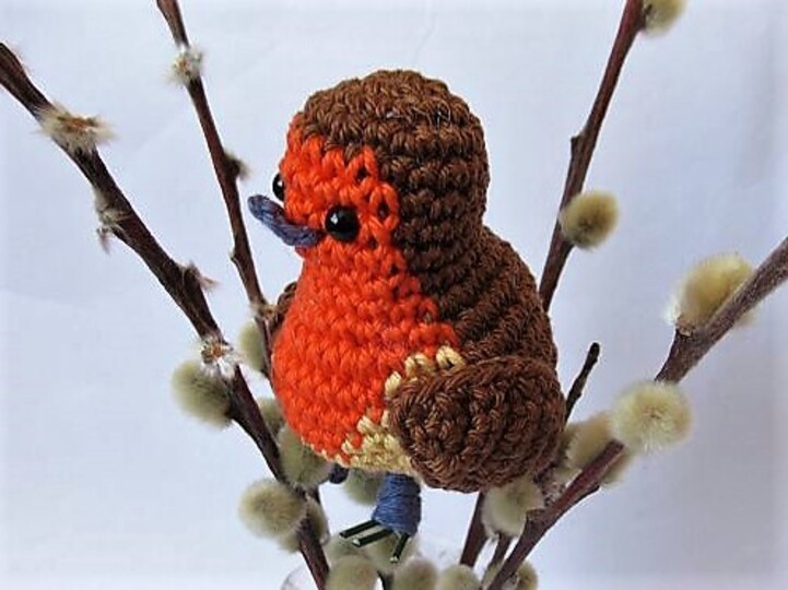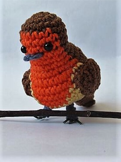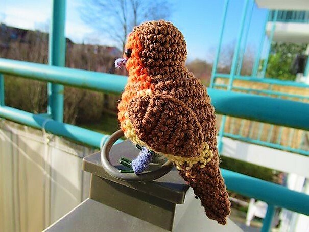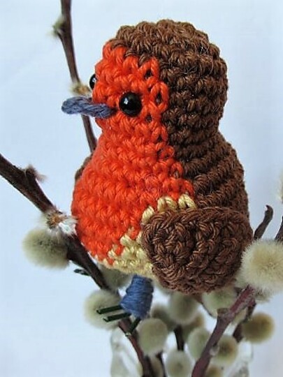 Mit dem empfohlenen Baumwollgarn wird das Rotkehlchen (von Kopf bis Schwanz) ca. 11 cm groß.