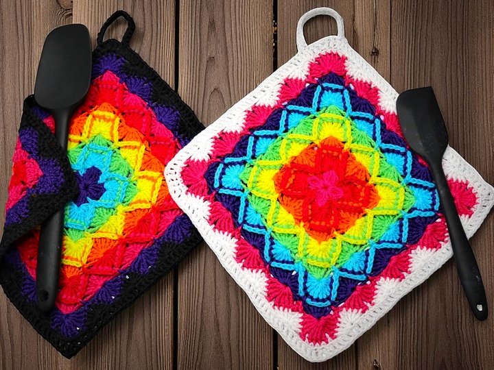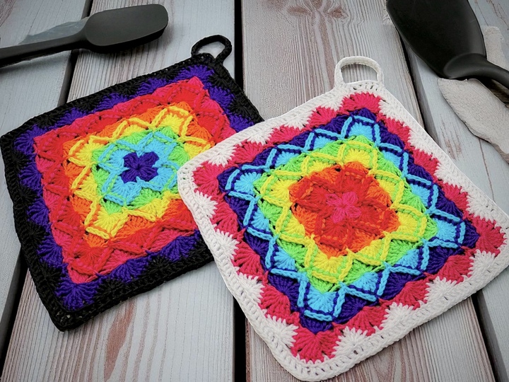 Spiele mit deinen Garnfarben, jede Runde kann eine neue Farbe verwendet werden und du bekommst ein echtes Unikat. Perfekte Topflappen für Resteverwertung deiner Baumwollgarne.