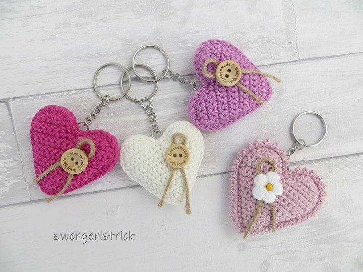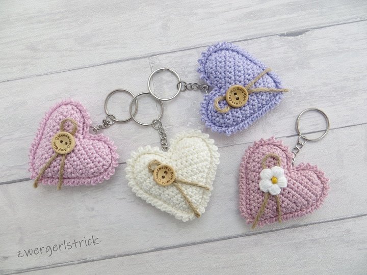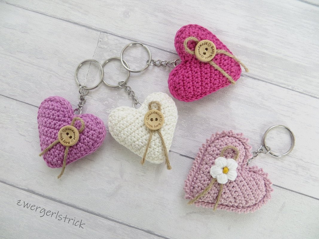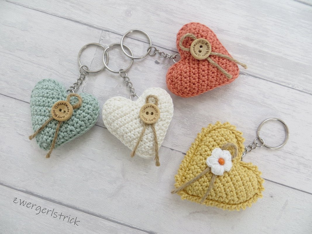 Häkelanleitung für kleine Herzen - verschiedene Varianten als Anhänger/Schlüsselanhänger