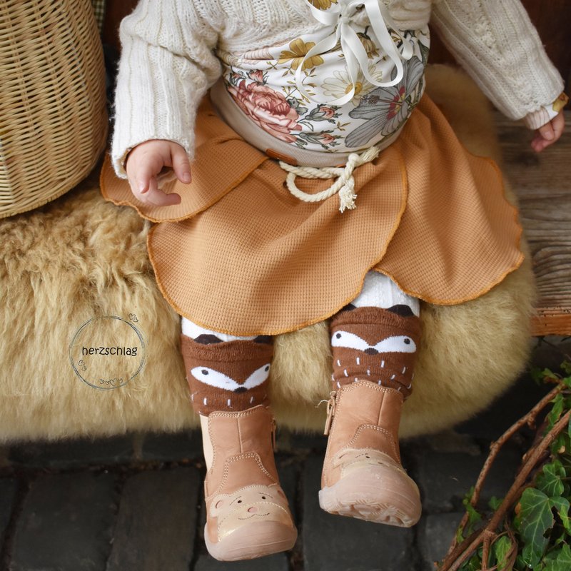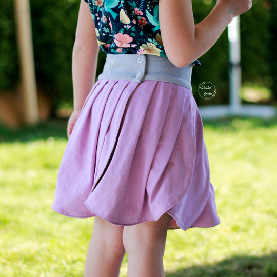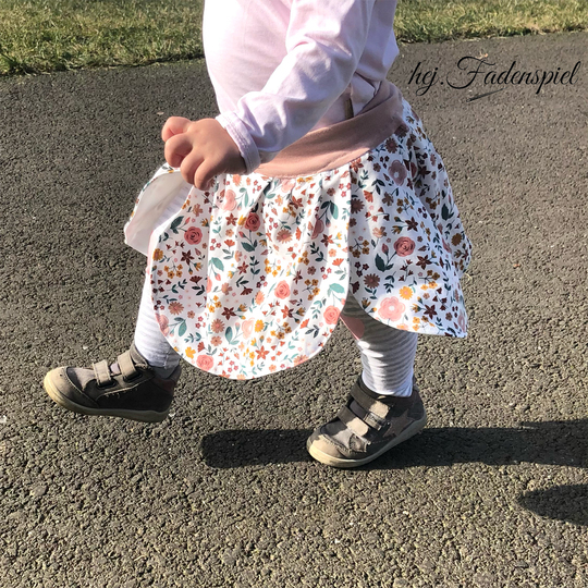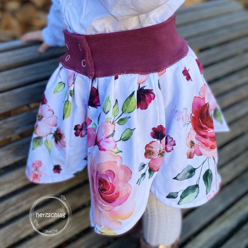 lovely rose ist ein verspielter bequemer Rock, den Mädchen vom Laufalter bis ins Teenager-Alter (Größe 74-158) über das ganze Jahr tragen können.