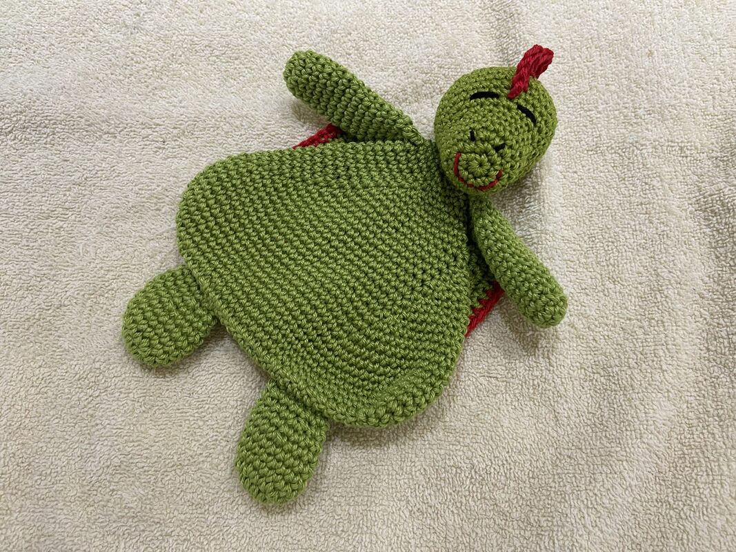 Ein schönes Geschenk zur Geburt oder Taufe ist das Schmusetuch "Drache" auf jeden Fall. Damit es auch viele Schmuse- und Knuddelattacken aushält, häkelt man es am besten aus Baumwollgarn.