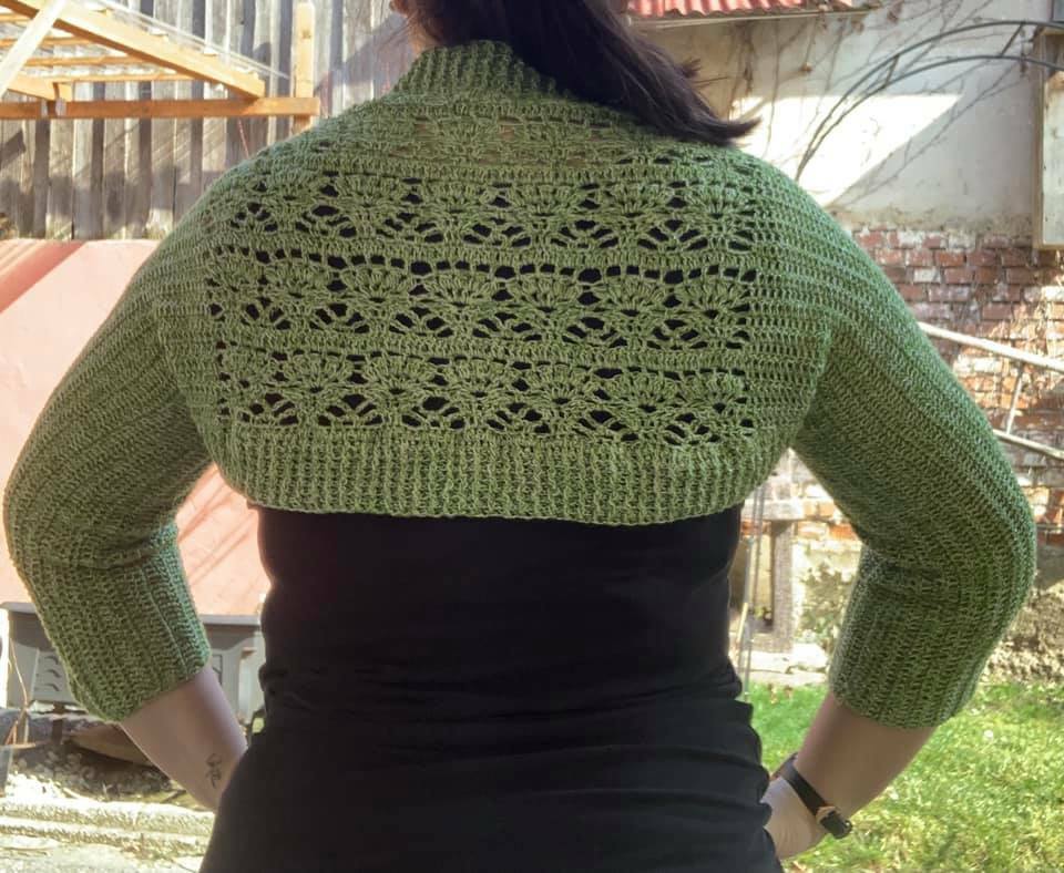 Der Bolero wird an einem Stück gehäkelt. Lediglich die Umrandung wird neu angesetzt.