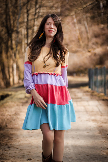 Ein Kleid mit vielen Möglichkeiten. Du kannst das Kleid mit Schluppe oder Ausschnittbeleg nähen. Es fällt sehr schön in Stufen, perfekt auch zu einer Leggins tragbar. Das Schnittmuster ist für fortgeschrittene Anfänger geeignet.