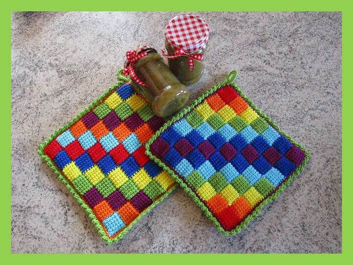Mit diesen Topflappen bringst du Farbe in deine Küche, gleichzeitig sind sie eine wunderbare Deko und lassen sich farblich auf deinen Stil abstimmen.