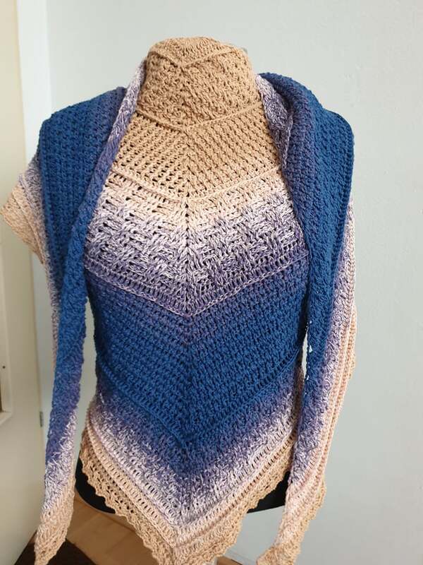 Bei „Taima“ handelt es sich um ein Dreieckstuch, welches klassisch von der Mitte aus gehäkelt wird, aber mehr in die Breite wächst.