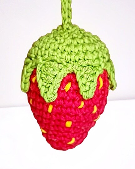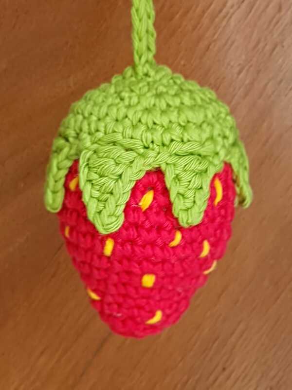 Bei Verwendung meiner Angegebenen Materialien wird die Erdbeere 7,5cm groß. Jedoch kann die Größe leicht abweichen, je nachdem wie fest oder locker gehäkelt wird.
