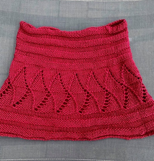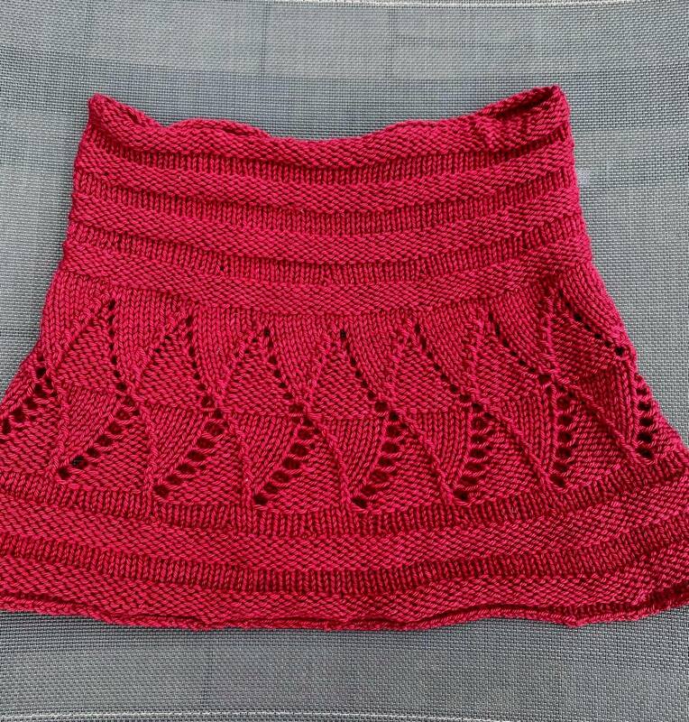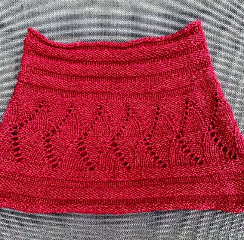 Der obere und untere Rand wird mit Streifen in glatt re und links gestrickt und mittendrin gibt es ein Lochmuster, welches beidseitig fast gleich aussieht, somit ist dieser Cowl beidseitig zu tragen.