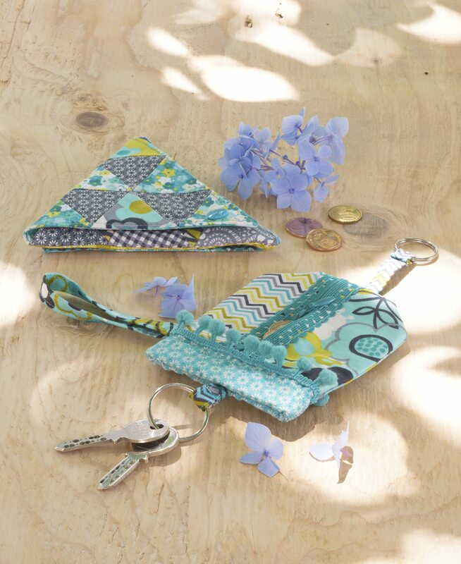 Die Geldbörse und das Schlüsseletui sind praktisch und dekorativ zugleich und begleiten Sie auf allen Ihren Unternehmungen. Aus Patchwork-Dreiecken ist die Außenseite der außergewöhnlichen Geldbörse zusammengesetzt. Mit Hilfe von Druckknöpfen kann die Außenseite in Form eines Parallelogramms zur Geldbörse zugeknöpft werden. Das Schlüsseletui überzeugt durch viele praktische Details und einem Innenteil, welches Platz lässt für Kleingeld und Einkaufswagen-Chip.