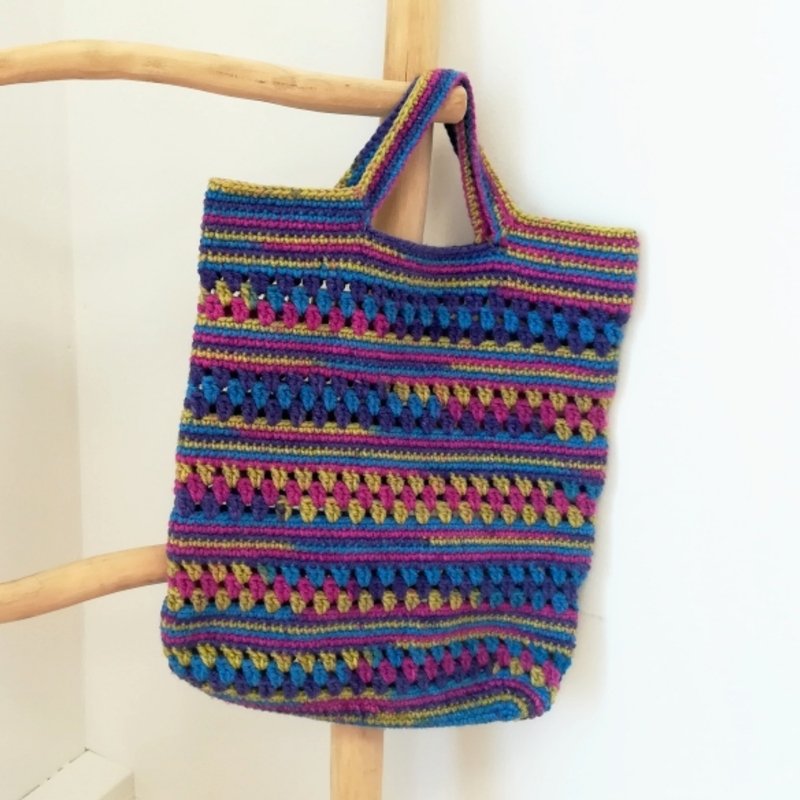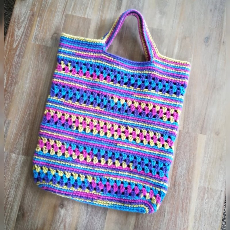Dies ist eine Häkelanleitung für eine Häkeltasche.