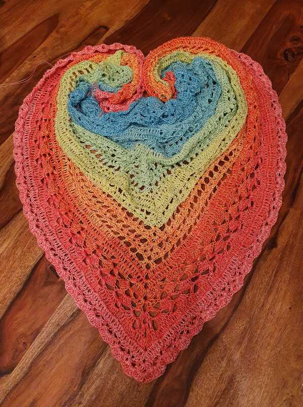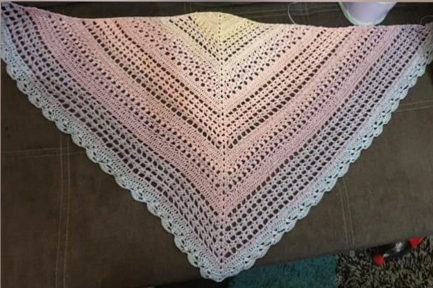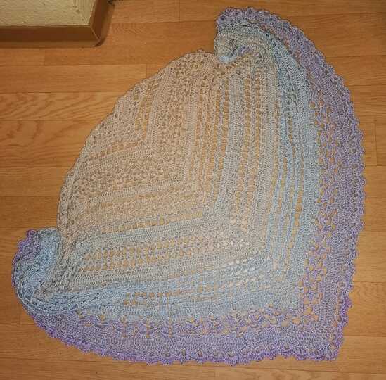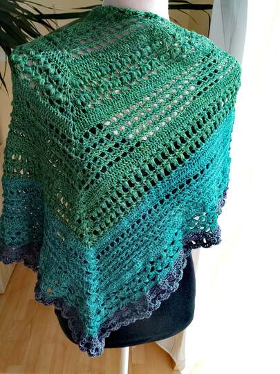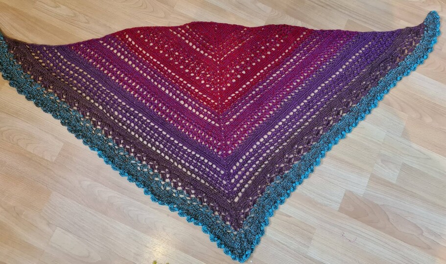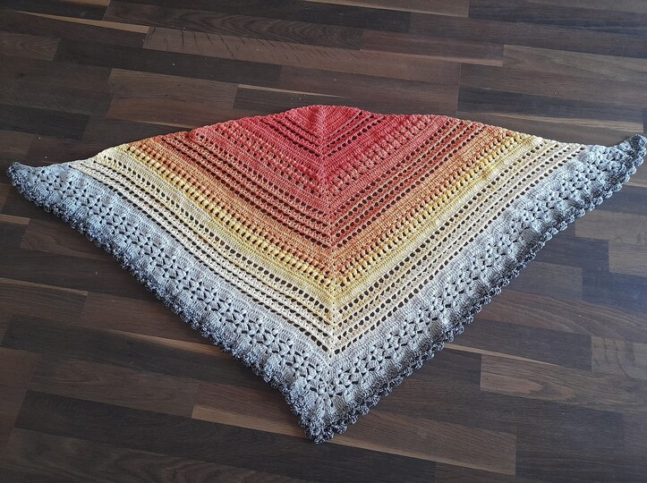 Dies ist kein Riesen-Einkuschel-Tuch, kann aber durch anpassen der einzelnen Musterreihen beliebig erweitert werden.