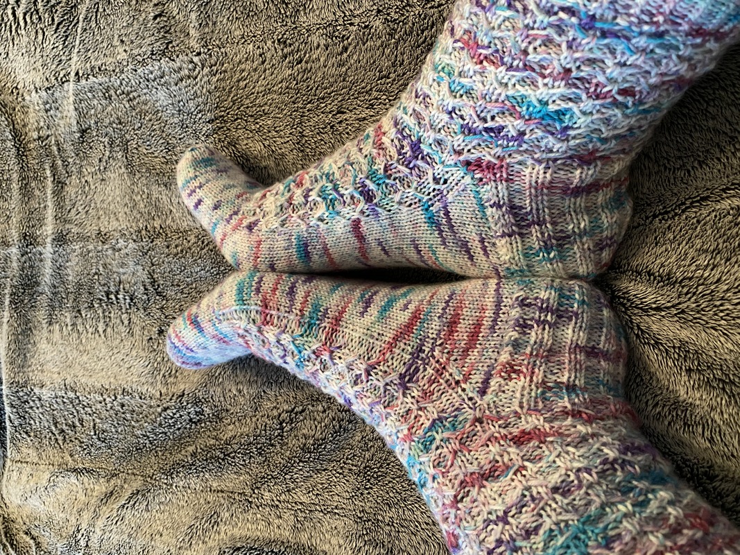 Die Socken werden von oben nach unten gestrickt. Es werden die Käppchenferse und die Sternchenspitze gestrickt. Beide Techniken sind in der Anleitung detailliert beschrieben.