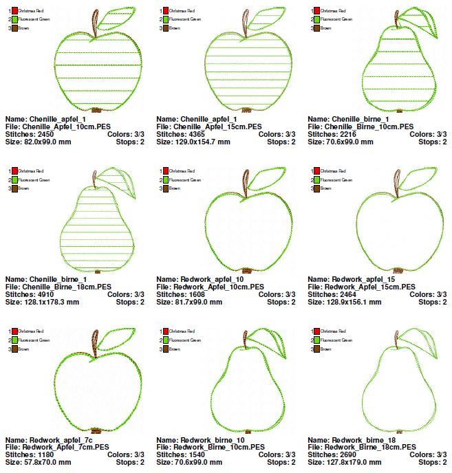 ~~ Birne Redwork (7cm, 10cm, 18cm)