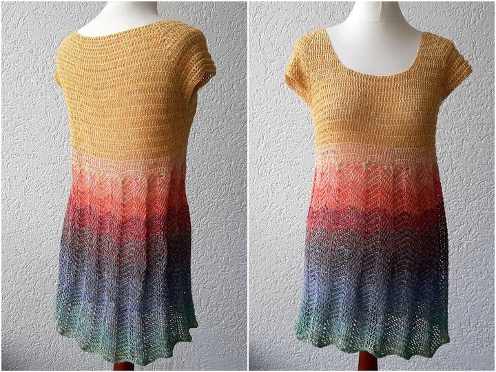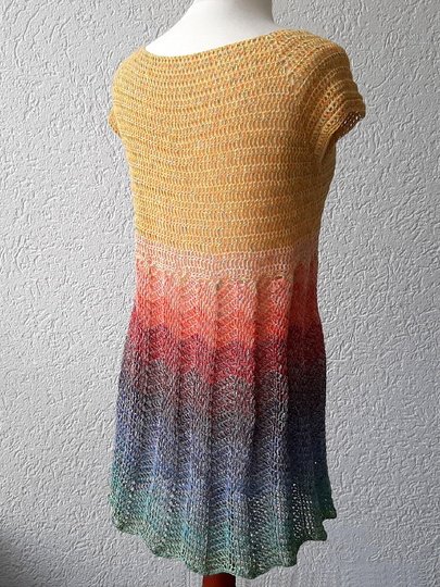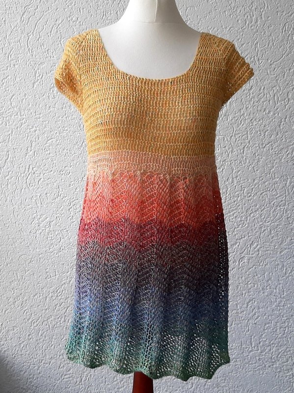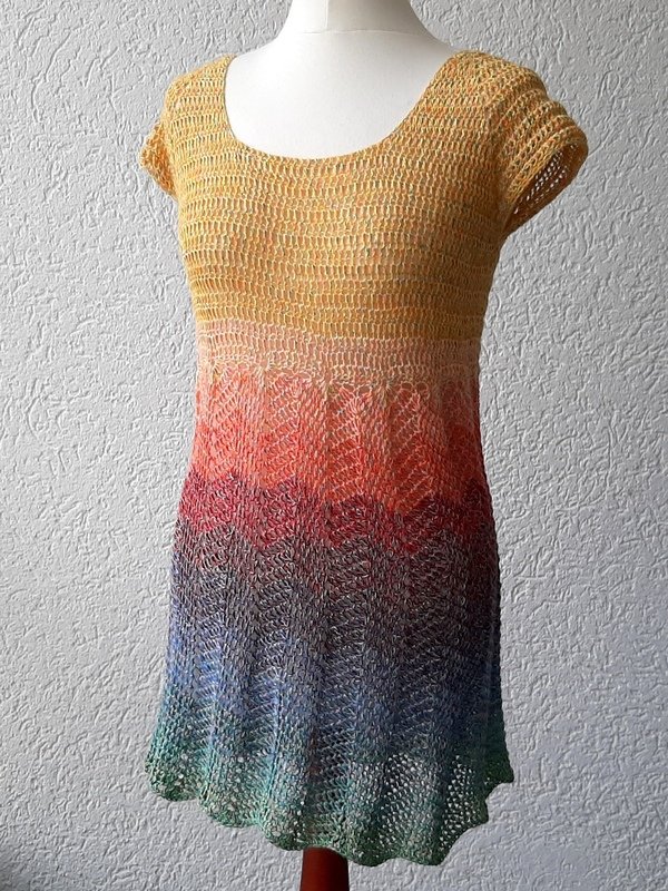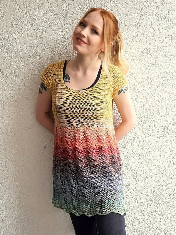 Luftig, leicht und beschwingt mit der Tunika "Sonnenschein". Dieses Oberteil kann als Shirt, Kleid oder Tunika gehäkelt werden.