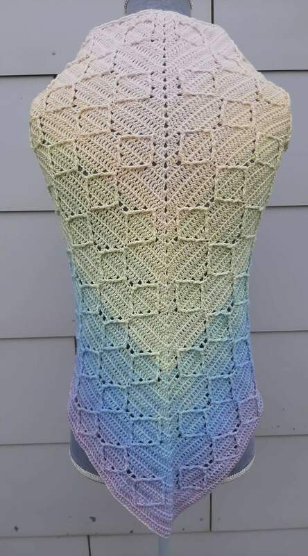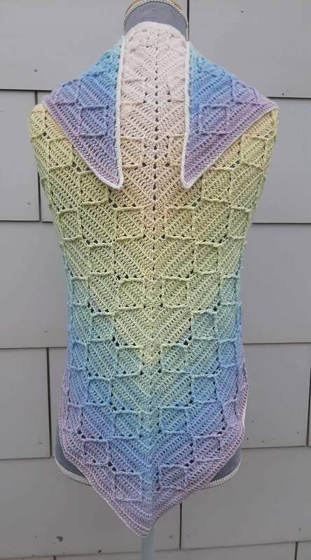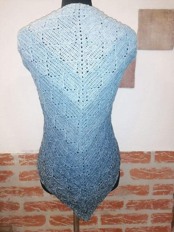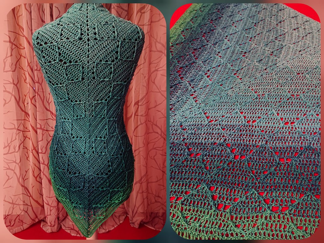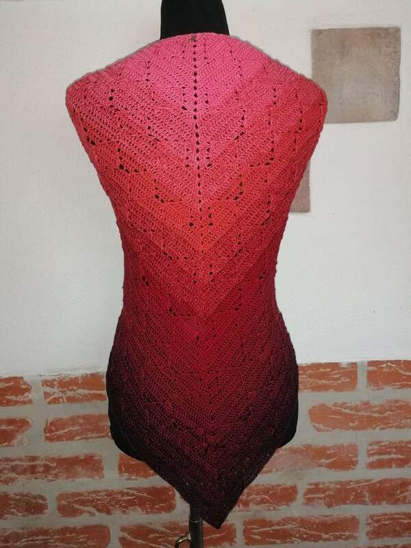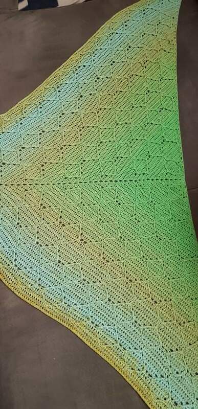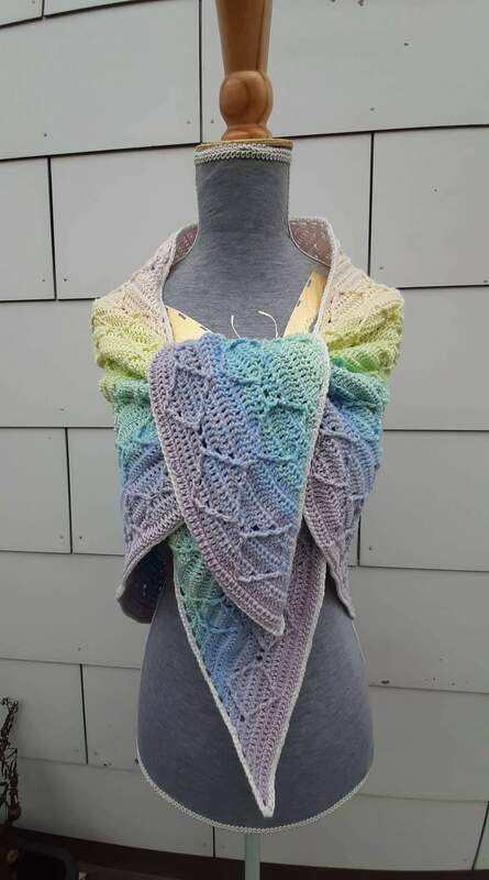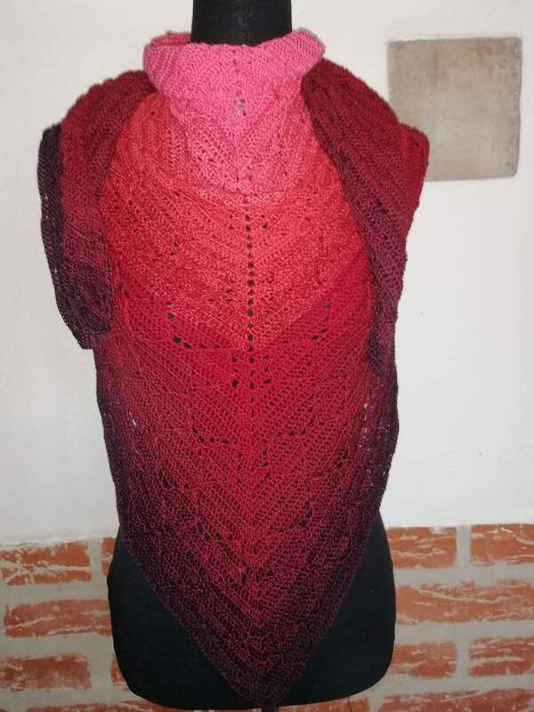 Die Anleitung zum Tuch besteht aus schriftlich ausformulierten Reihen und beinhaltet Häkelschriften.