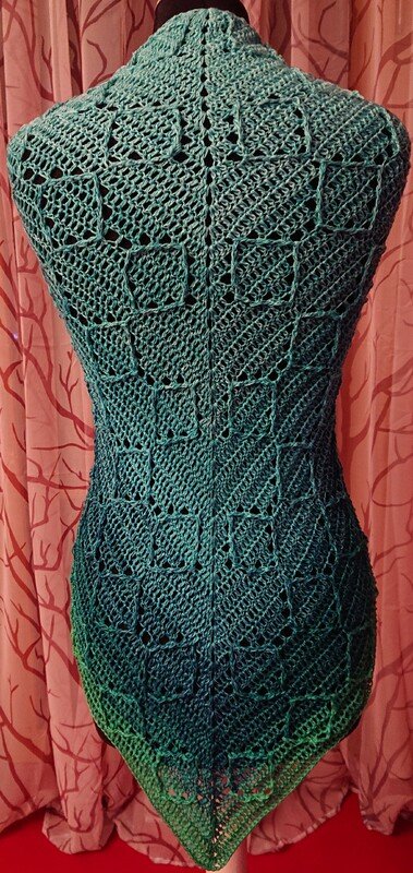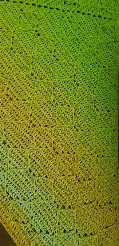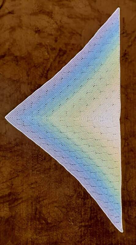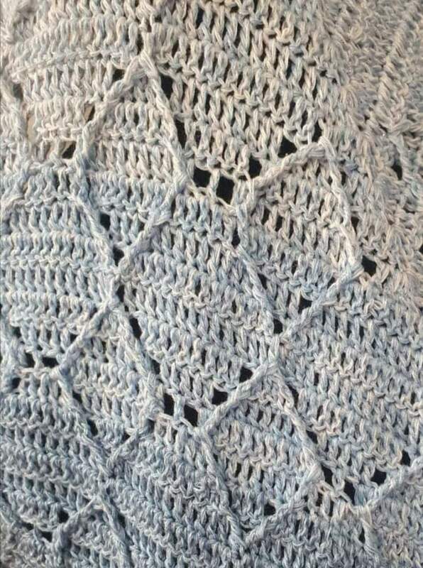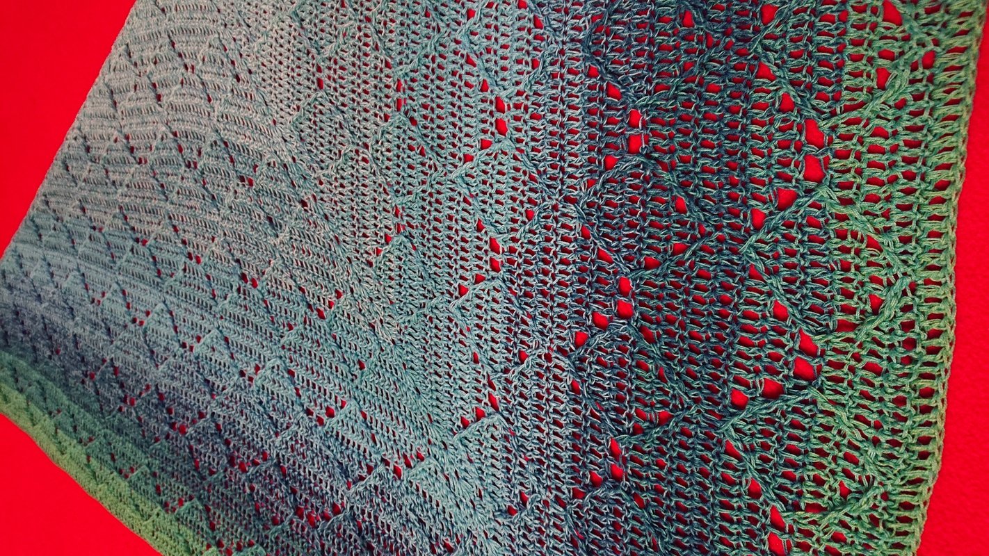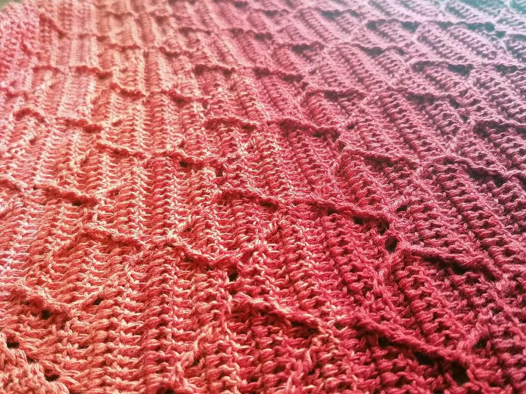 Das Tuch Amira besteht aus sich immer wiederholenden Reihen, die schnell im Kopf bleiben und, die ein schönes strukturiertes Gesamtmuster ergeben.