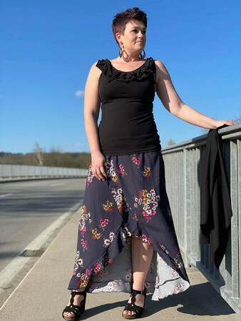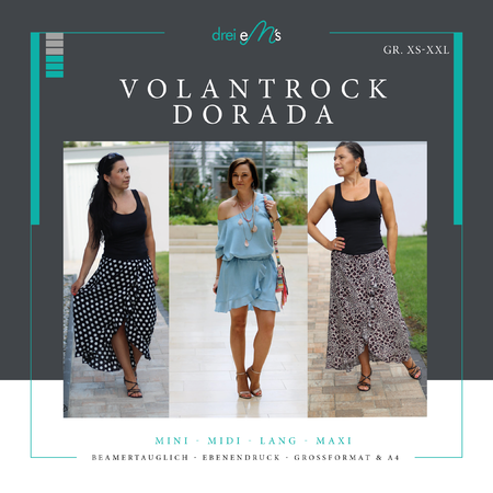 DORADA bekommst du in den Größen XS-XXL. Der Schnitt enthält 4 Längen mit einem zauberhaften Volant.