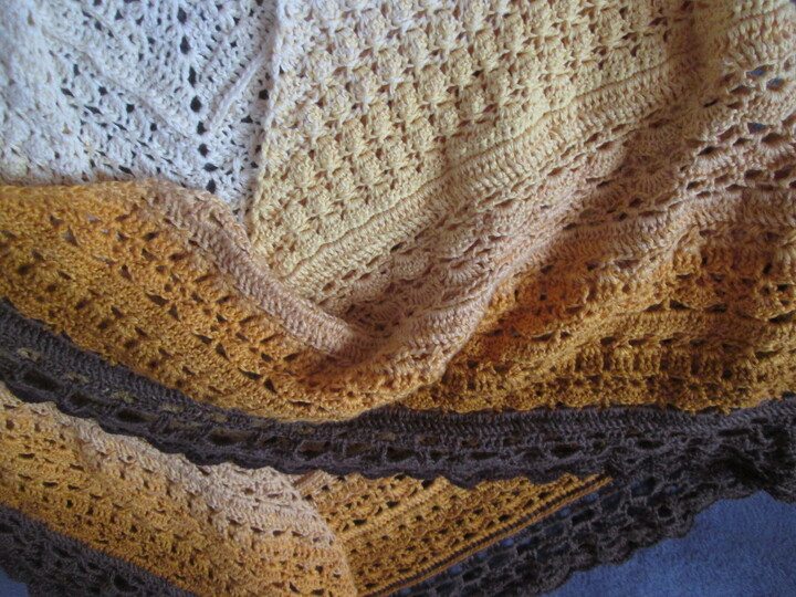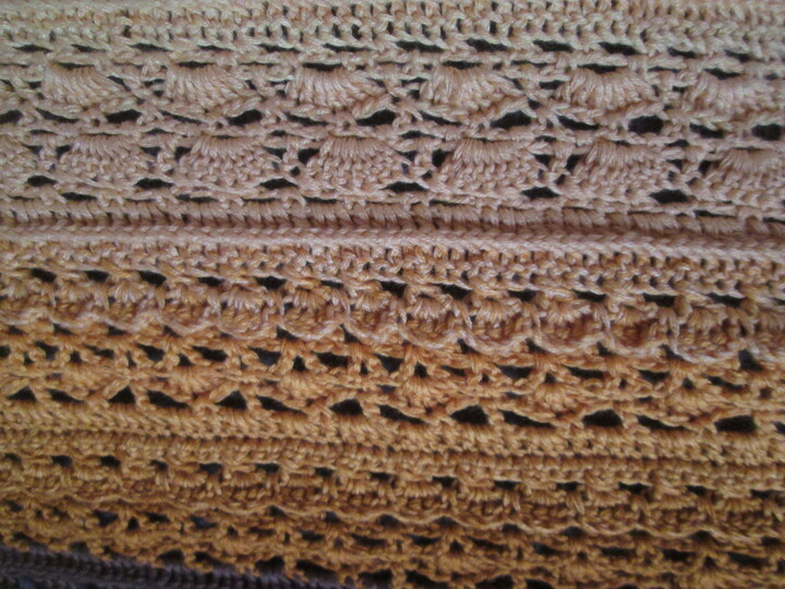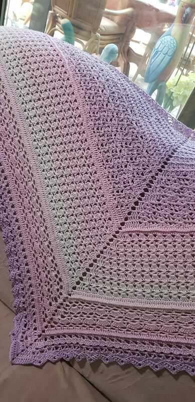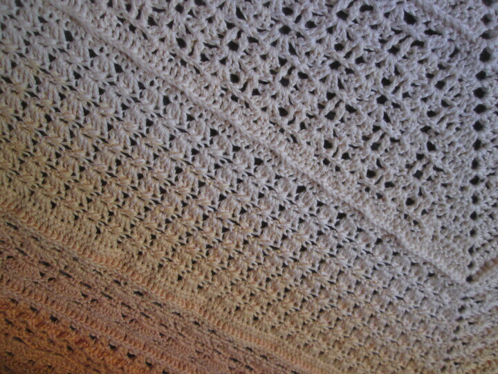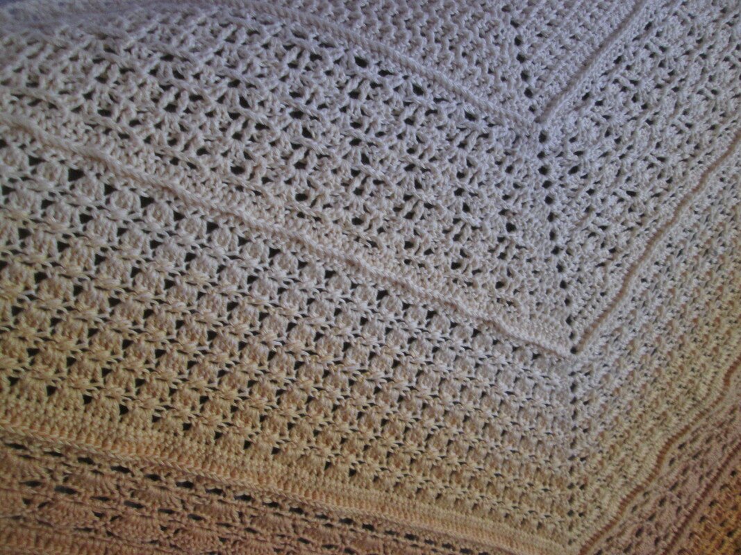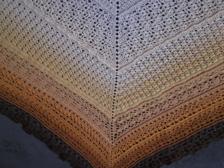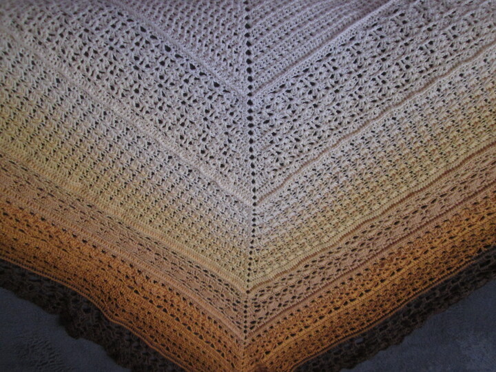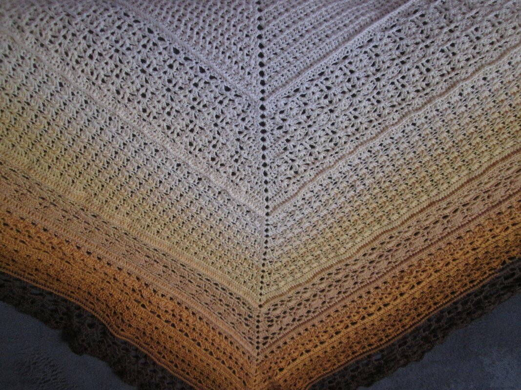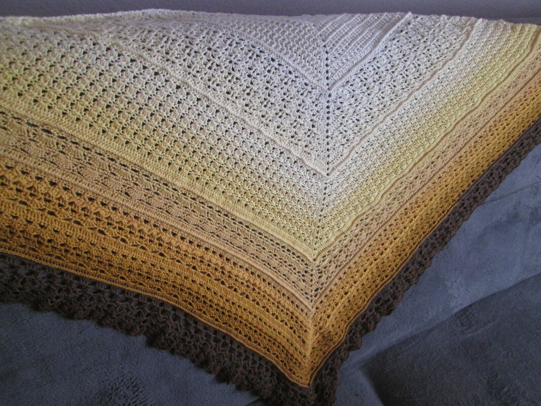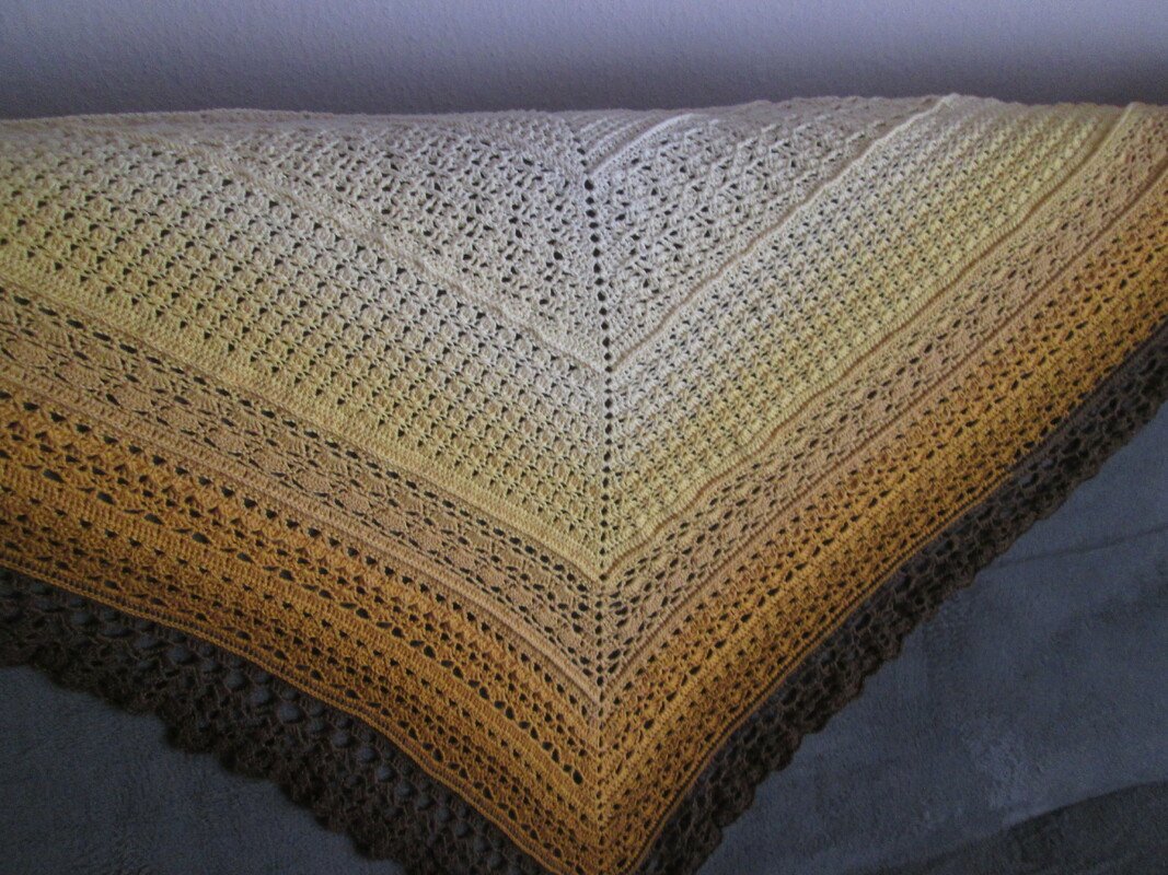 Material: 3 oder 4 fädiges Verlaufsgarn , ca.1500 Meter.Das Tuch kann beliebig groß gehäkelt werden