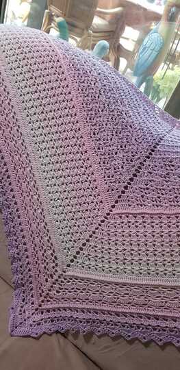 Durch das einfache wiederholen der Maschen ergibt sich dieses wunderschöne Muster.Das Muster kann beliebig groß gehäkelt werden somit kannst Du die Optik Deines Tuches selbst bestimmen!