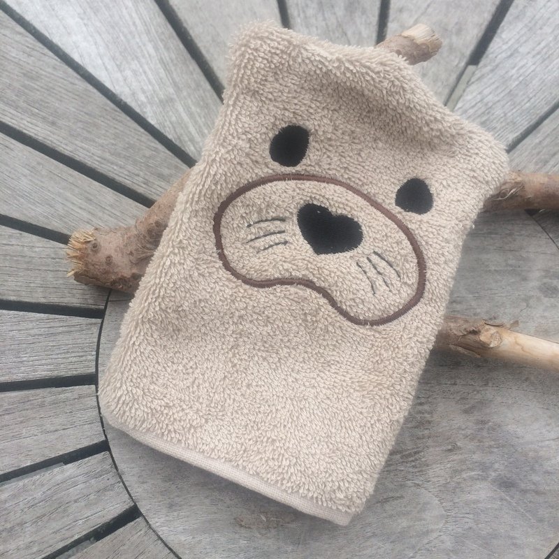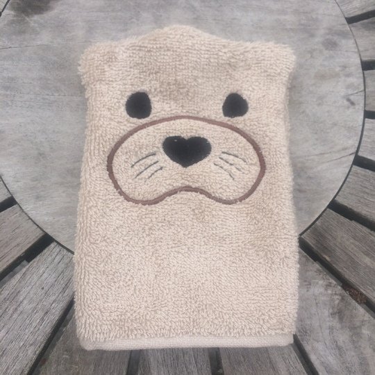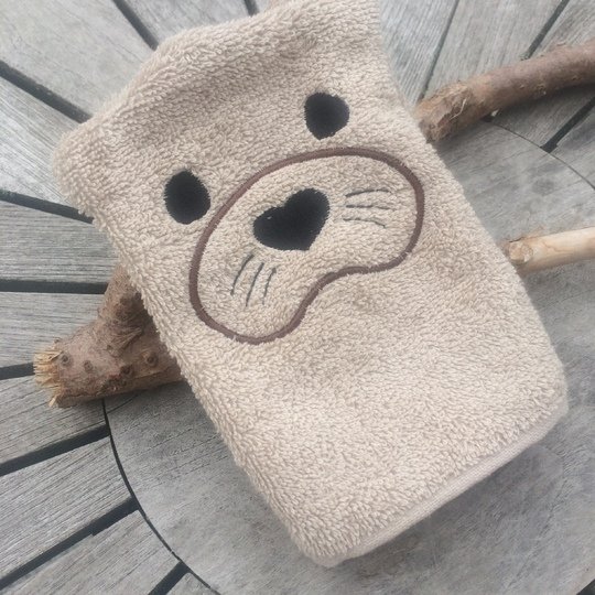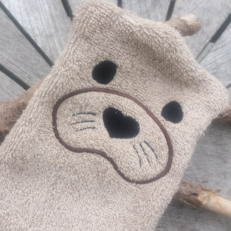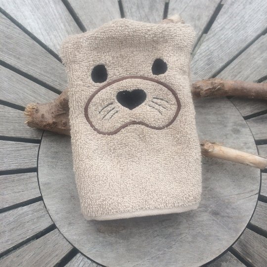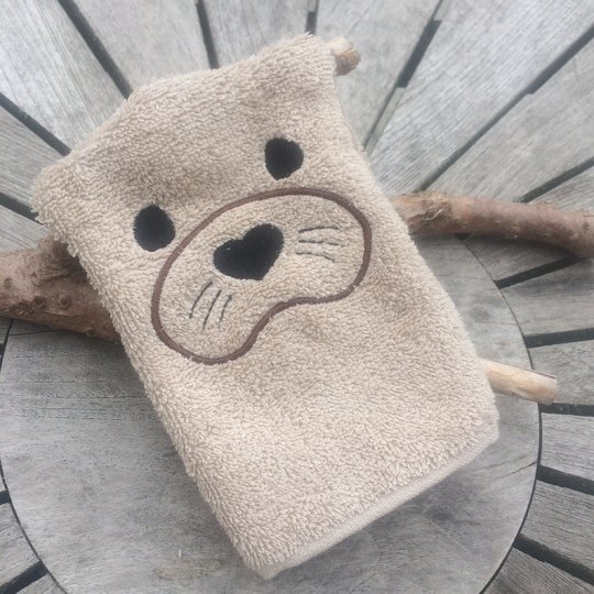 Der Waschlappen hat am Ende eine Breite von 12 cm und eine Länge von 17 cm.