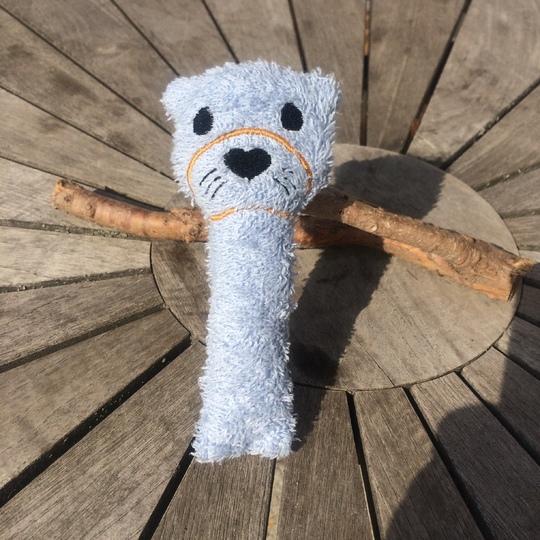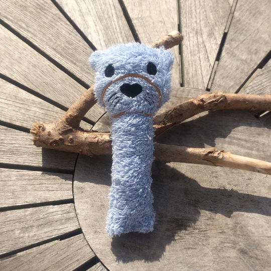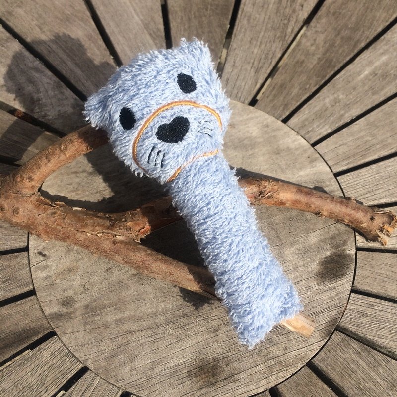 Die Rassel hat eine Größe von 17 x 7 cm.