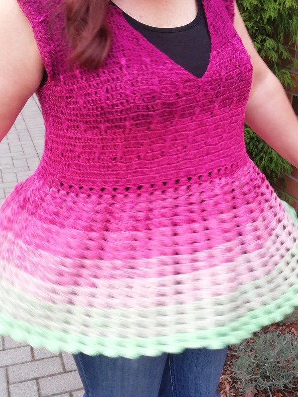 Die Anleitung ist geschrieben in Größe 42/44, kann aber durch den Rvo Stil ganz einfach an jede beliebige Größe angepasst werden. Ohne großes Umrechnen und nur mit dem Arme schließen ist hier von Kindergröße bis Erwachsenengröße alles möglich