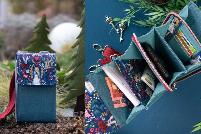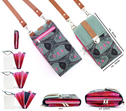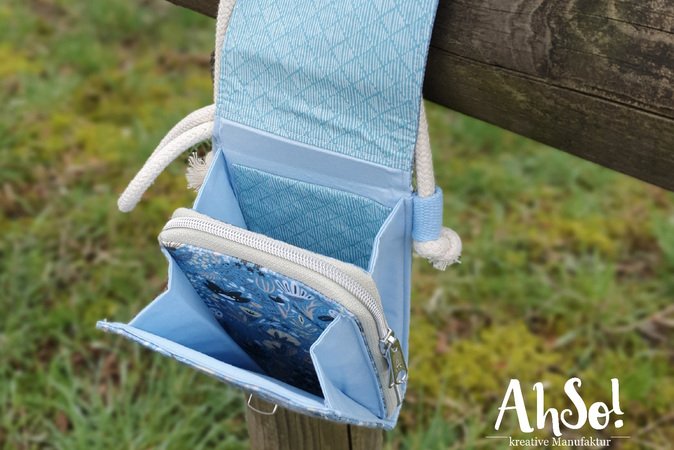 Little Foksa ist eine kleine Umhängetasche in den Maßen ca. H 20cm x B 12cm und bietet genügend Platz für “das Nötigste”, aber auch eine kleine Geldbörse, wie z.B. die „Little Mynta“ passt hinein. Die Tasche kann wahlweise mit einem Geldbörsen-Einsatz (Variante A) oder als einfache Handy-Umhängetasche (Variante B) genäht werden.