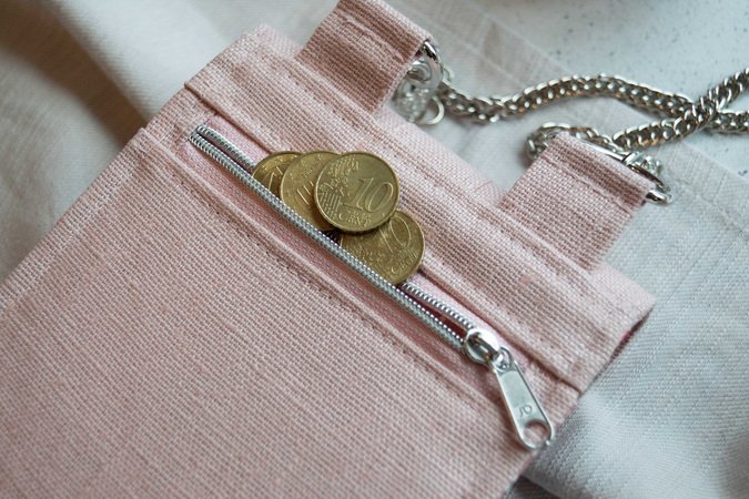 Auf der Rückseite von „Little Foksa“ kann ein Reißverschlussfach integriert werden, in dem z. B. Münzgeld oder andere Kleinigkeiten sicher verstaut werden können.