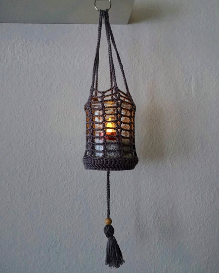 Es gibt auch Windlichter, die hängt man auf, im Garten beim Campen oder in einem Wohnwagen.