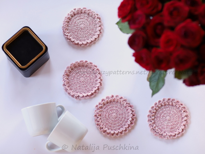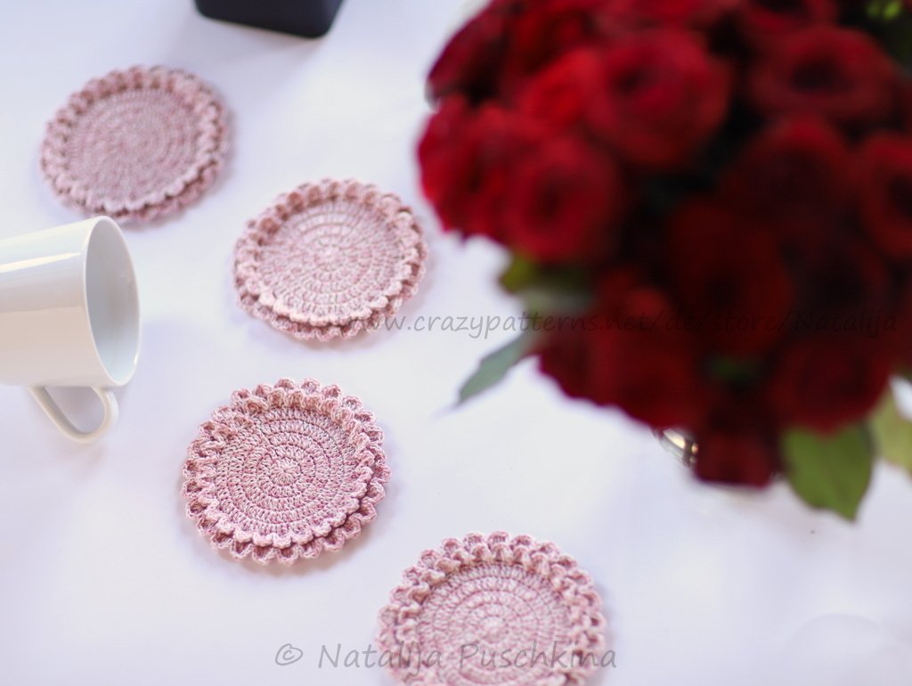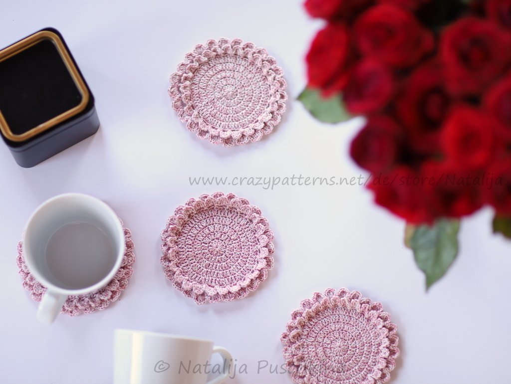 Verkauf der von Dir hergestellten Tassenuntersetzer ist möglich: Du darfst die Artikel, die Du mithilfe meiner Anleitung zum Häkeln von Tassenuntersetzer gefertigt hast, in beliebiger Stückzahl gewerblich verkaufen. Bitte den Hinweis: „Angefertigt nach dem E-Book von Natalija Puschkina https://www.crazypatterns.net/de/store/Natalija“ dazusetzen.