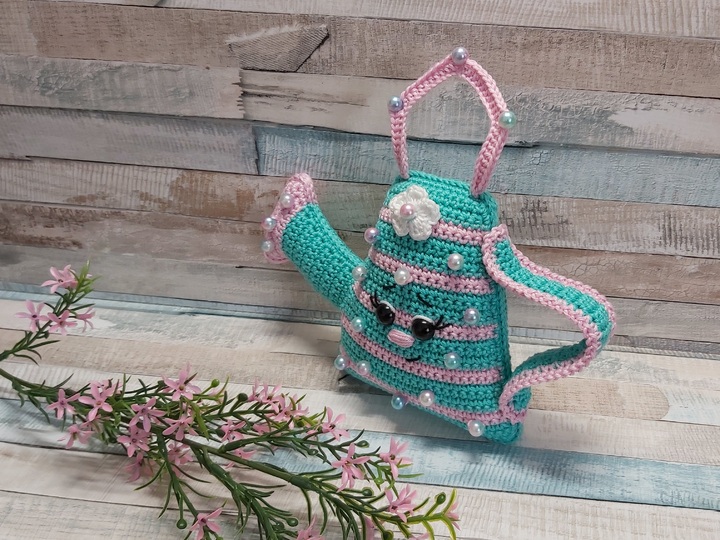 Mit dieser Häkelanleitung kannst Du dieses schmucke Gießkännchen ganz einfach häkeln!